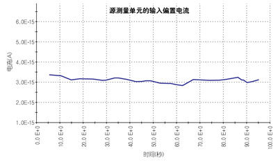 圖4,源測量單元的輸入偏置電流與時間的關(guān)系。